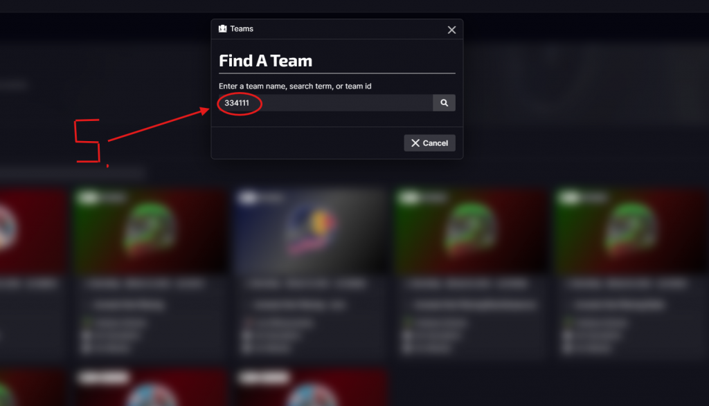 - Oben rechts auf Find a Team klicken.