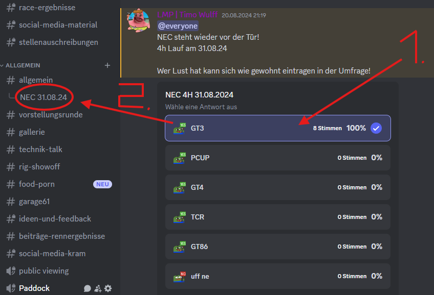 Klicke 1. bei der umfrage auf die Möglichkeiten, die dich ansprechen und dann auf Abstimmen. - Nach und nach prüfen wir die ergebnisse und fügen dann die Teilnehmer in ein Thread für das jeweilige Event.